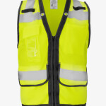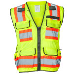 Class 2 Hi-Viz Lime Flame Resistant Mesh Surveyors Vest, Hook & Loop Closure, 3-Pocket, Solid Reflective Tape