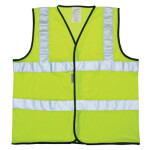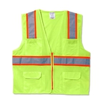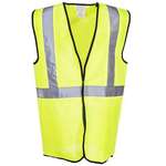 Class 2 high visibility safety vest. Lightweight, affordable, features breathable polyester material and 2” silver reflective tape.
